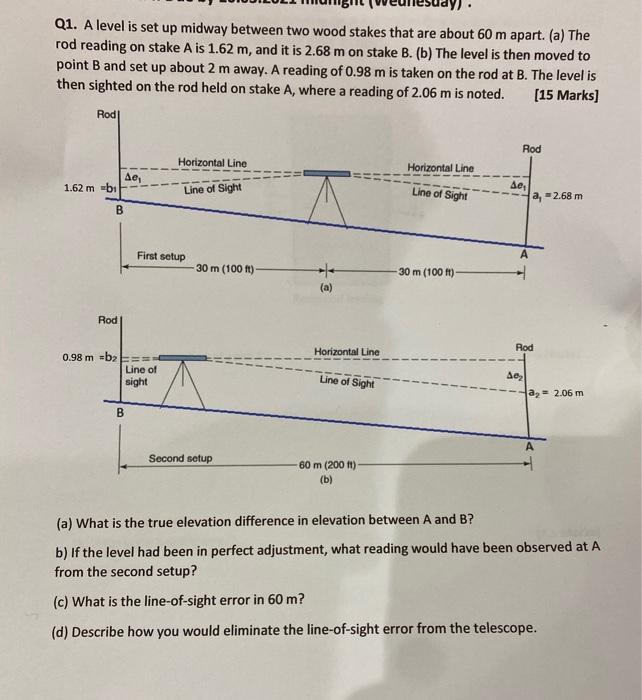Solved Q1 A Level Is Set Up Midway Between Two Wood Stakes Chegg Com